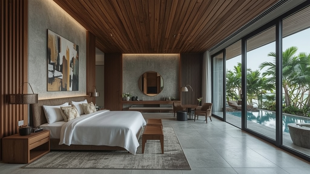 1. Kamar Mewah: Kamar yang dirancang dengan baik, dilengkapi dengan pemandangan pegunungan yang luar biasa.